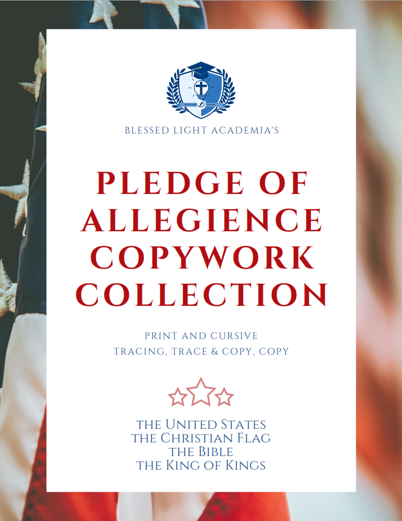 A differentiated Pledge of Allegiance copywork for children of all ages to learn four different pledges: to the American flag, to the Christian flag, the Bible, and to Jesus Christ.